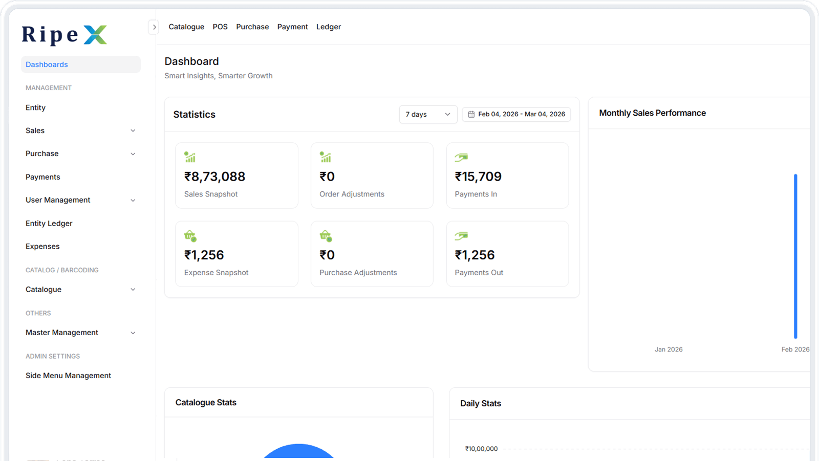 RipeX unifies sales, inventory, finance, and operations into one intelligent system — designed for clarity, built for control.